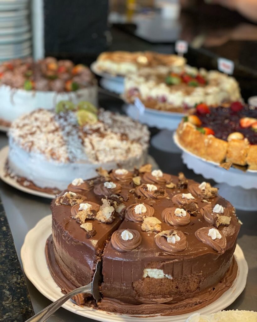 Grande variedade de tortas, pães e bolos